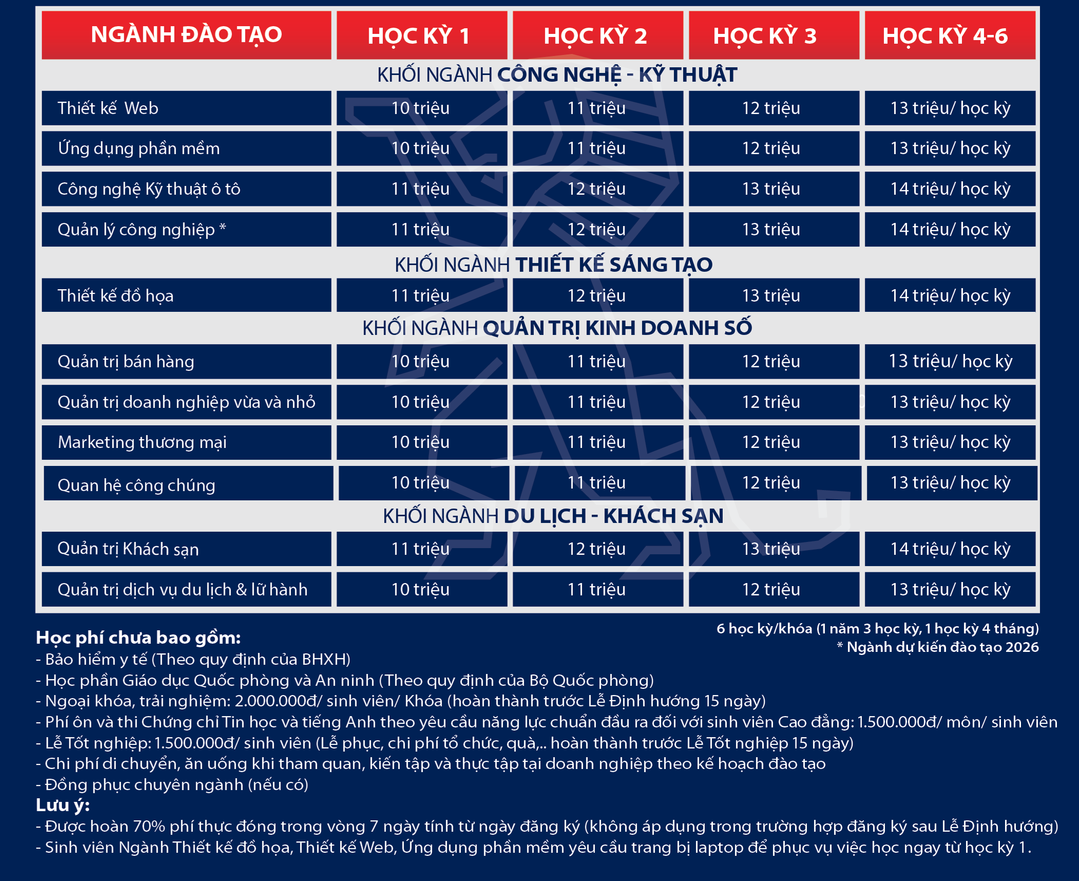 Học phí Cao đẳng chính quy Khoá 2026